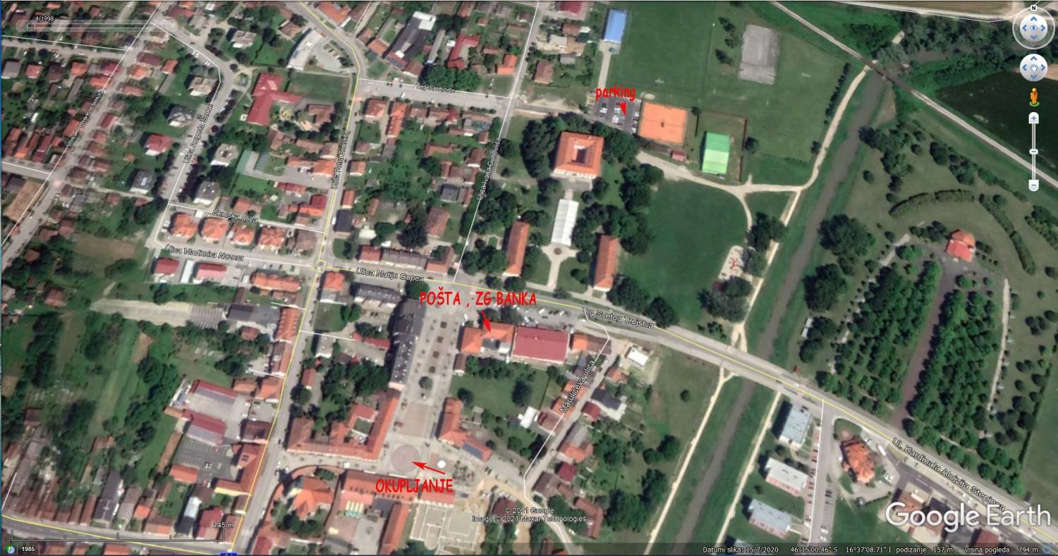 Sa parking Stadion NK Podravina, doći u centar kod kružnica "Centra svijeta" gdje je okupljanje. 3 minute od stadiona. Za mjesto okupljanja u navigaciju možete upisati "Pivnica Mejaši" ili hotel Amalija.
