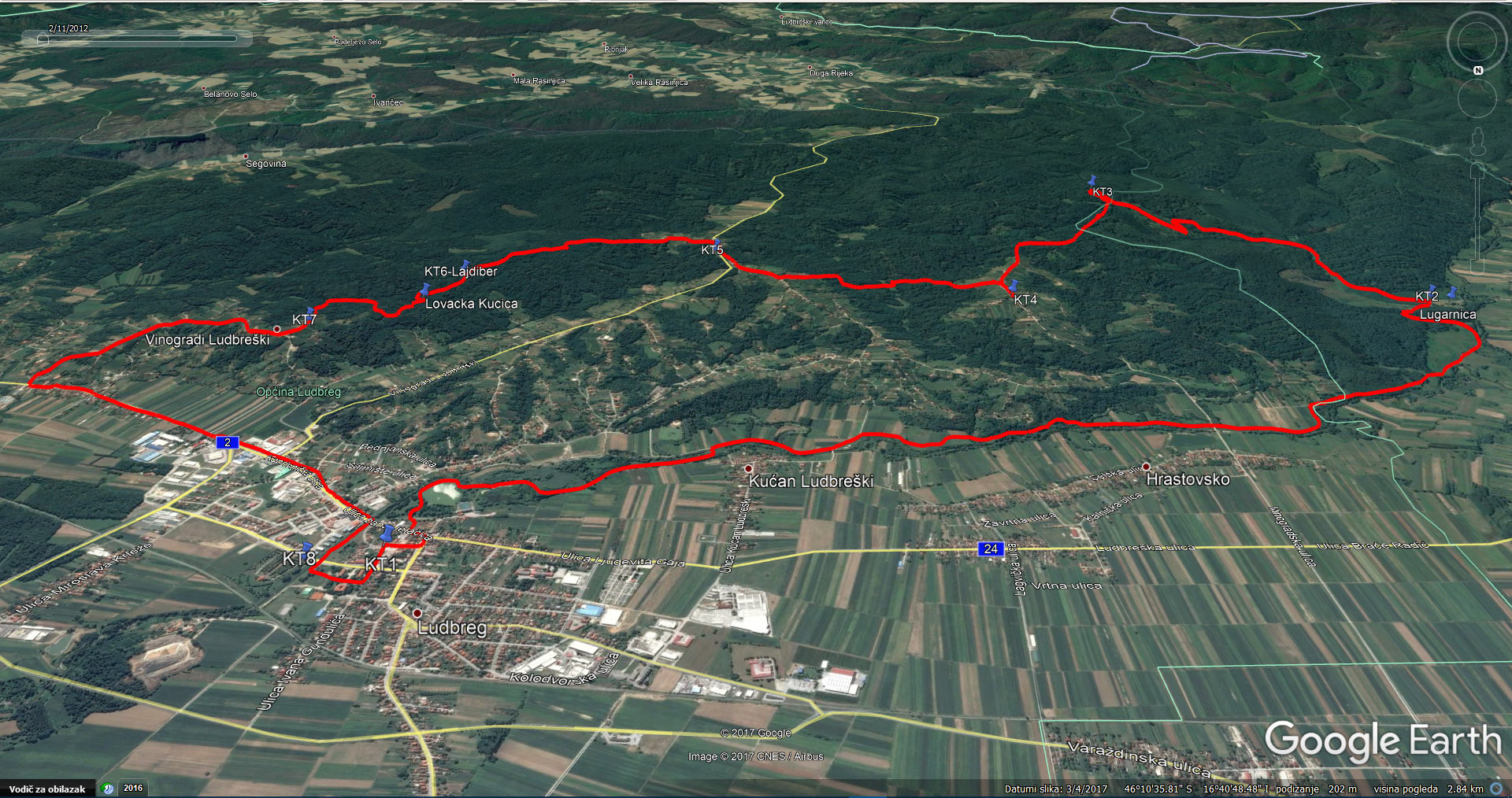 Graci (KT 4) - Ludbreški Vinogradi Črnoglavec (KT 5), 1h